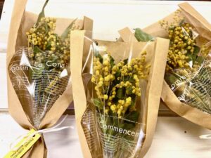 ミモザとラベンダーの壁掛けはこの時期の定番です。